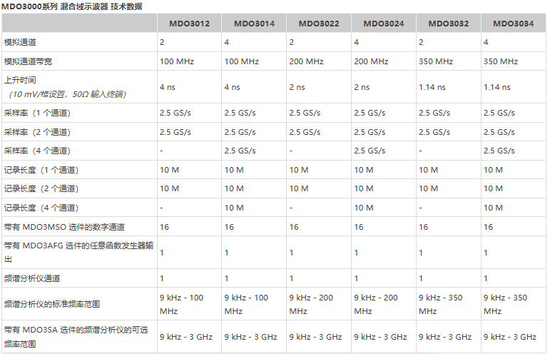 MDO3000系列 混合域示波器 主要性能指标